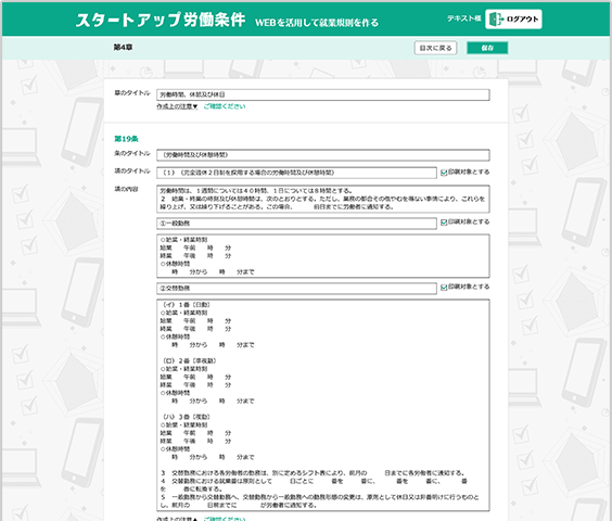 「目次に戻る」ボタンを押して目次作成画面に戻り、その他の章・条も同様に作成していきます。